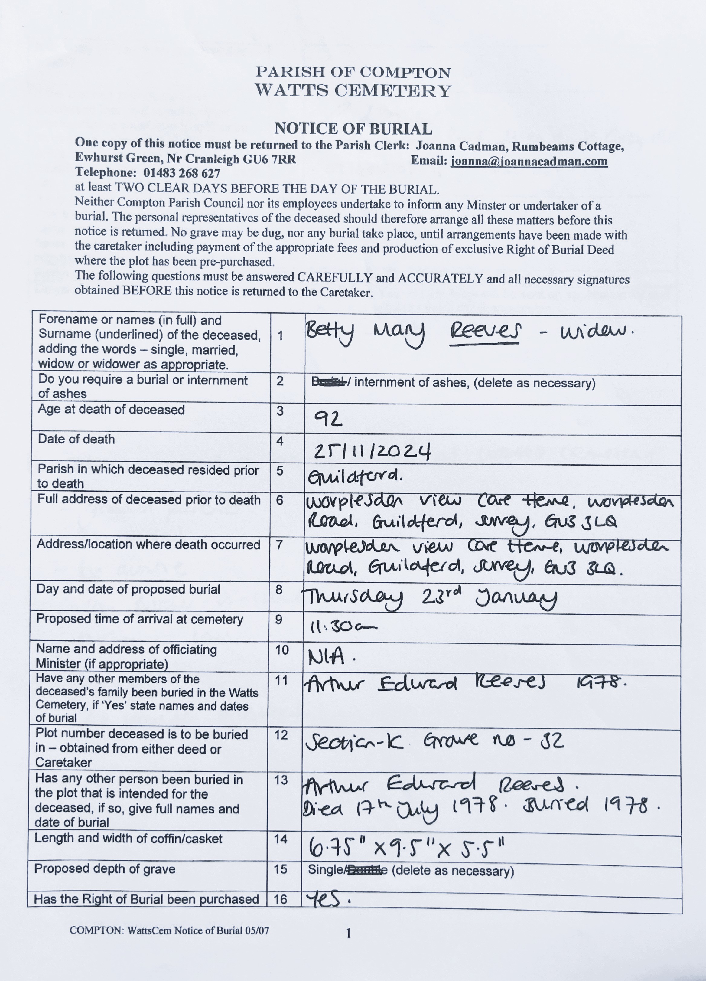 Reeves. Sarah
