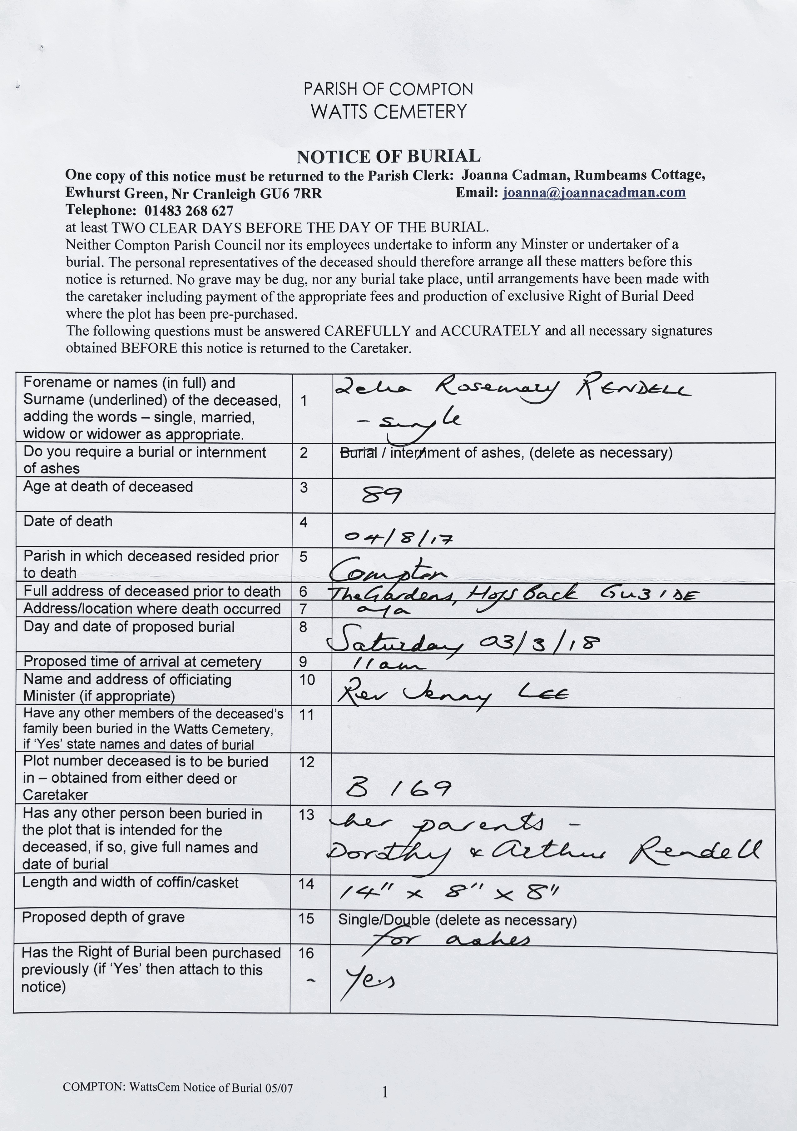 Rendell. Cecily