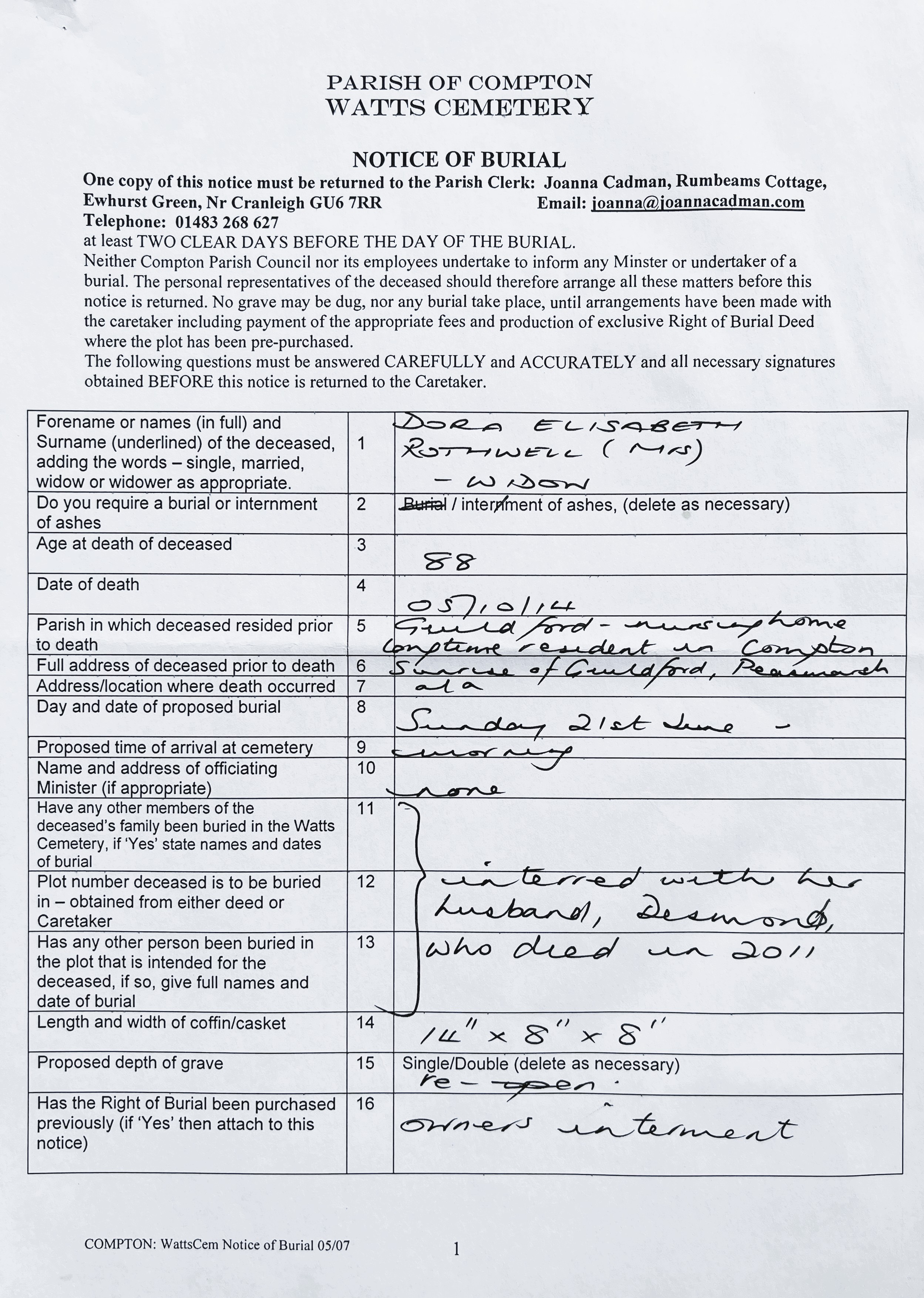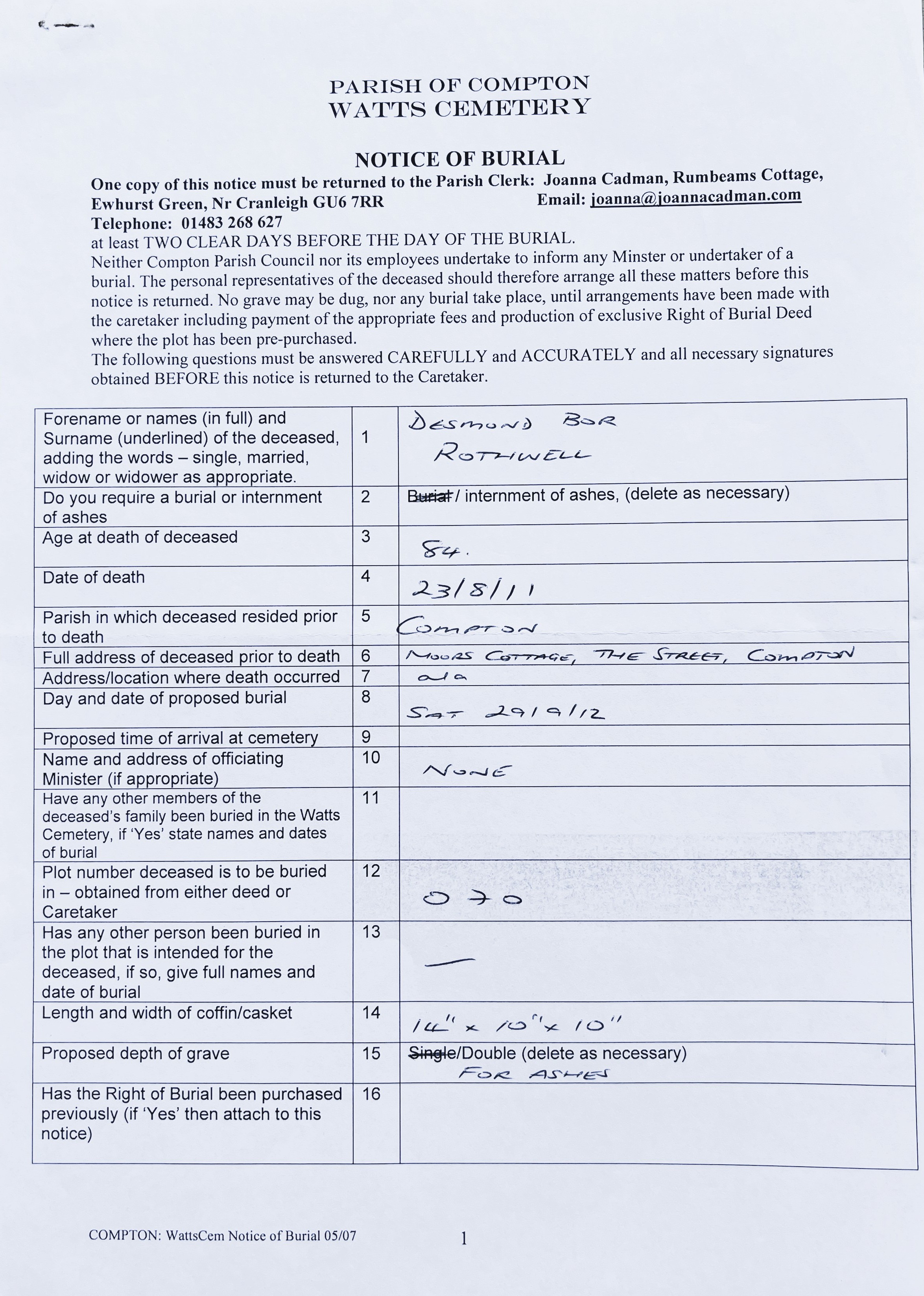 Rothwell. Desmond