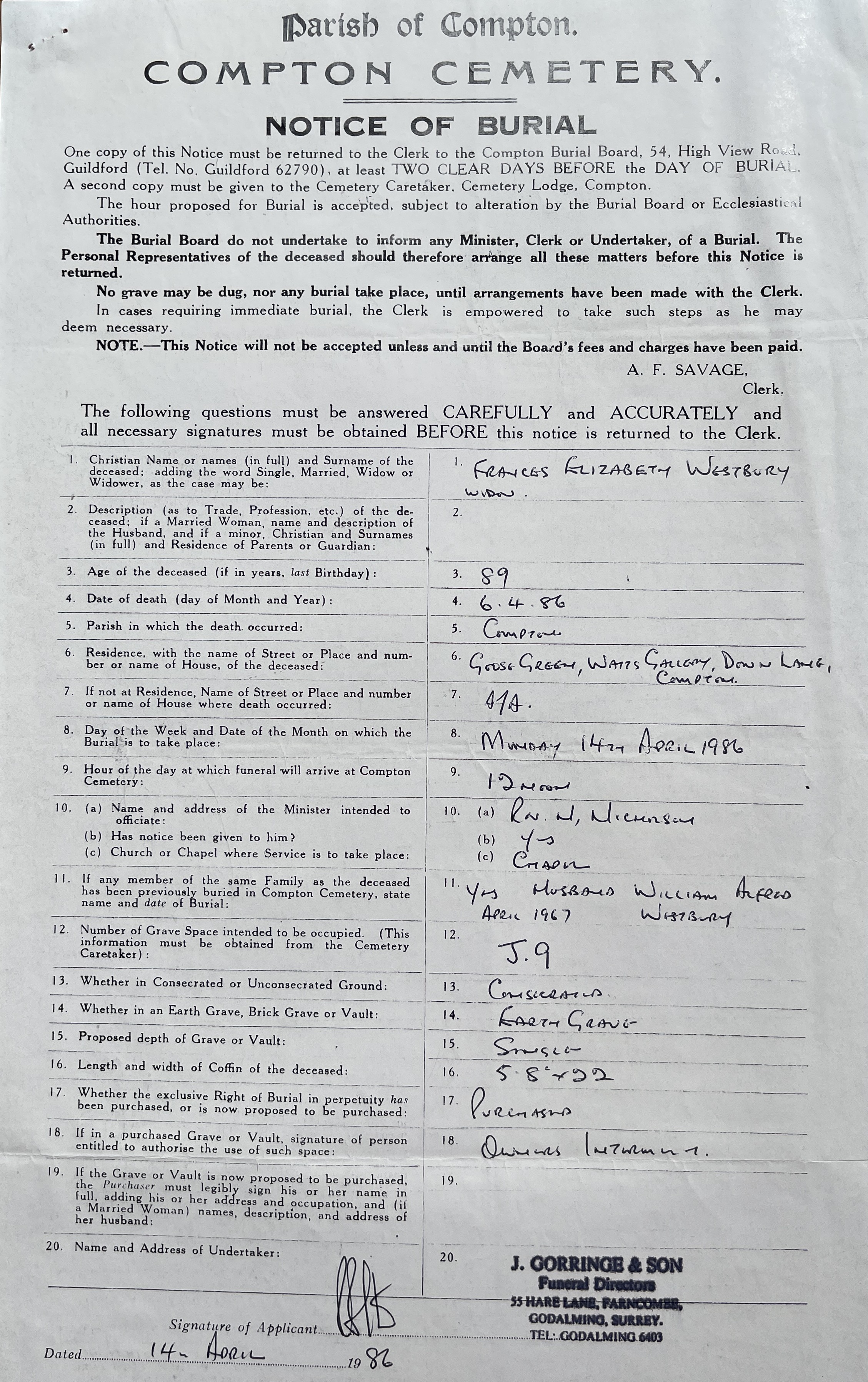 Westbury. Frances