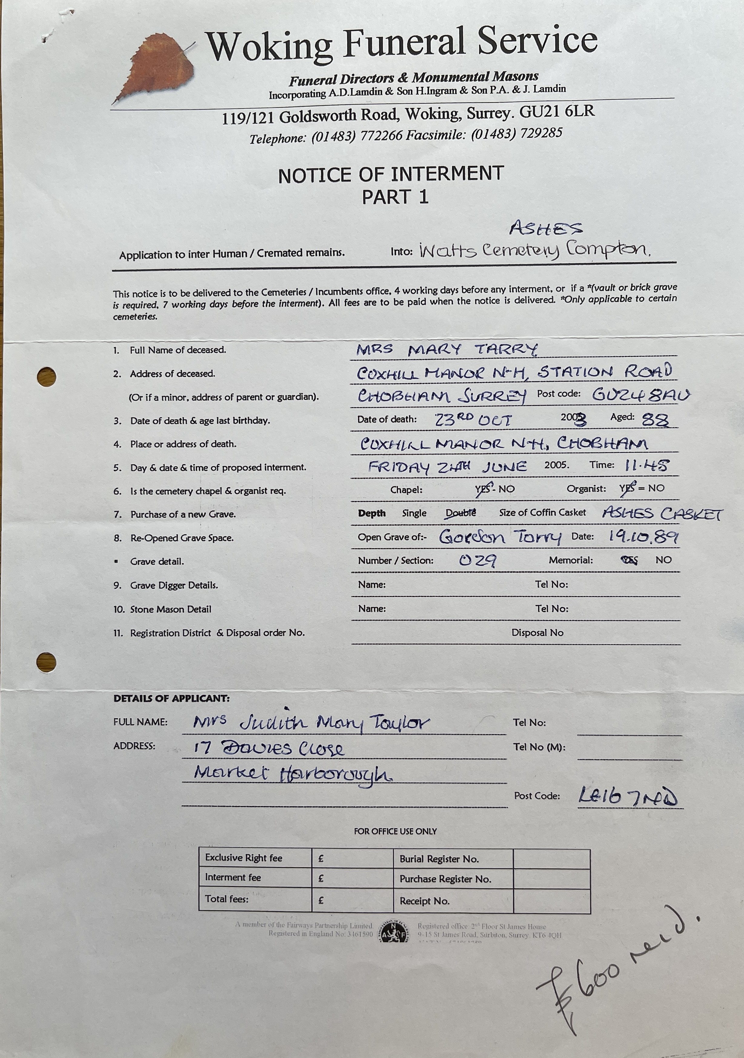 Whittaker. Mary