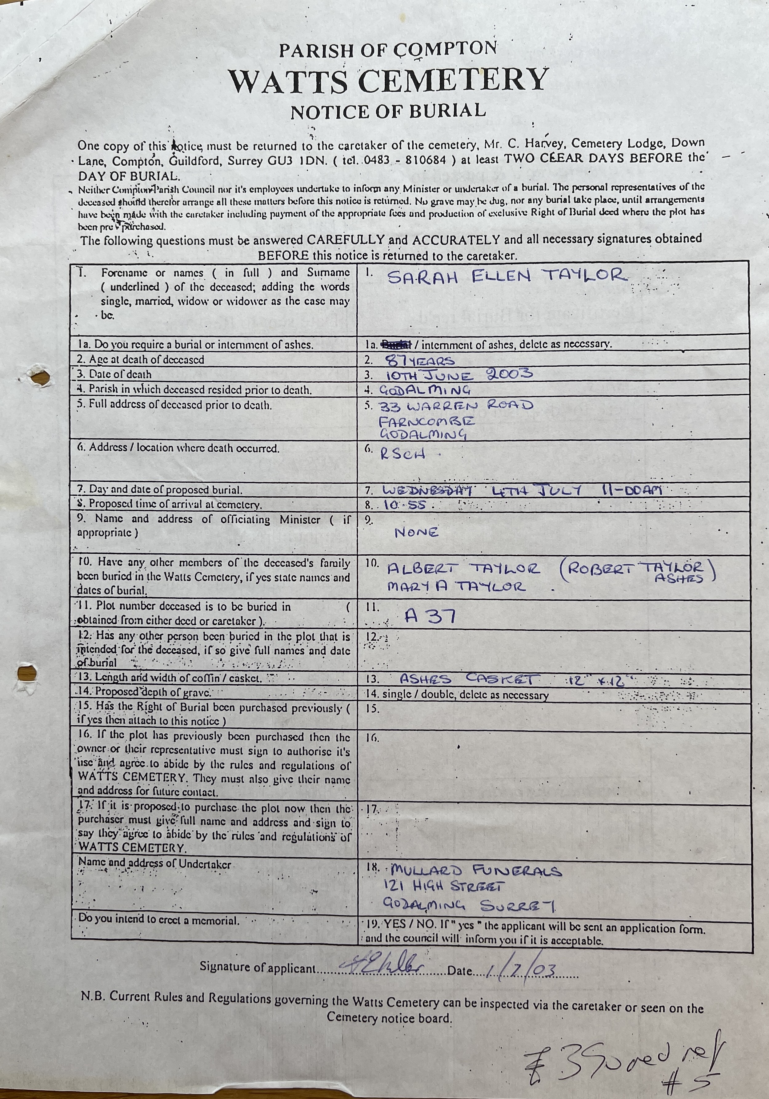 Taylor. Sarah