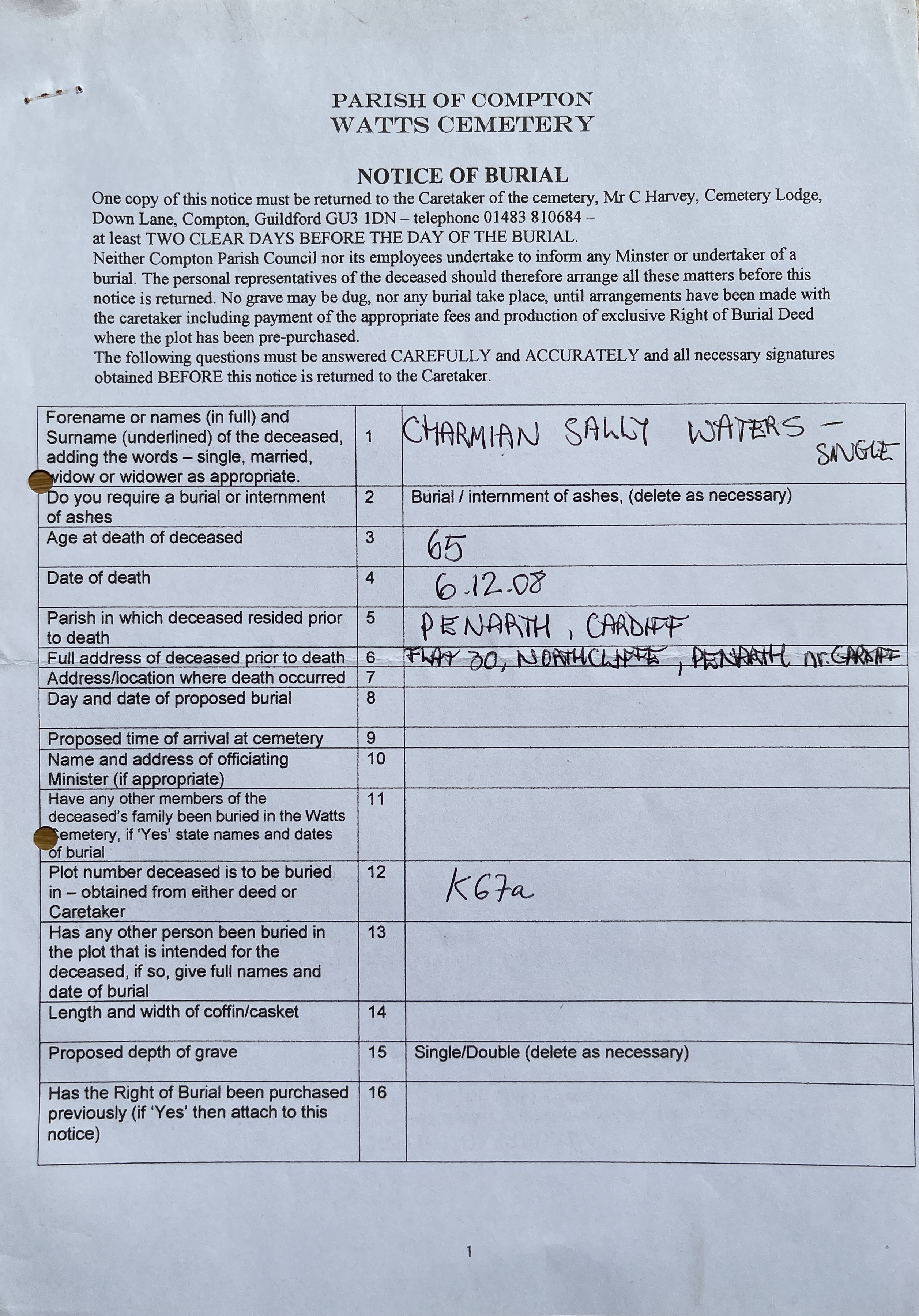Wakefield. Minnie
